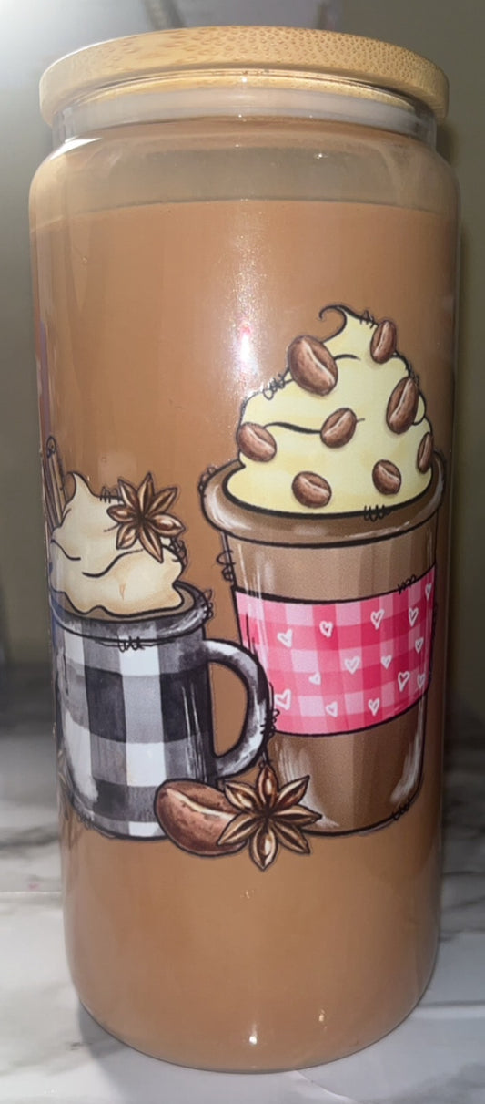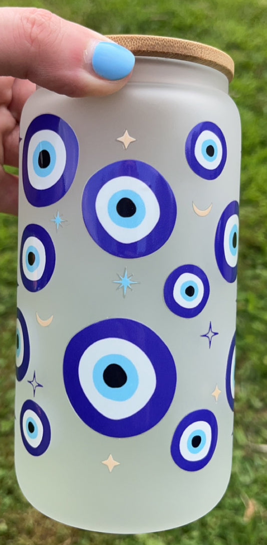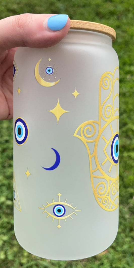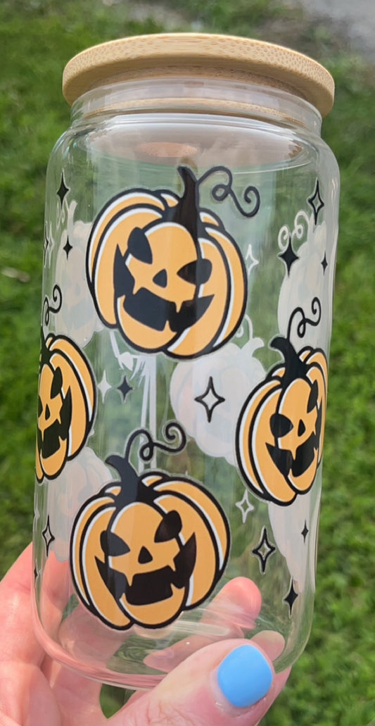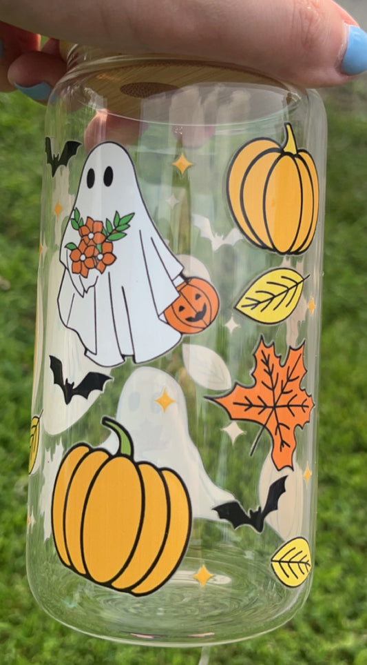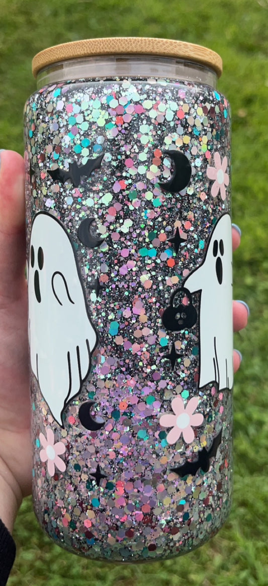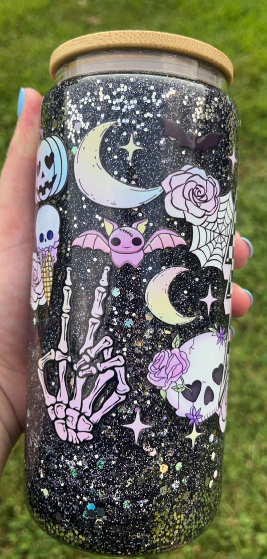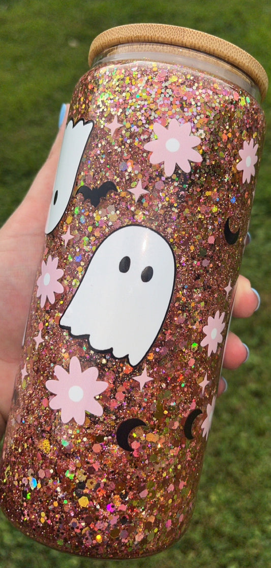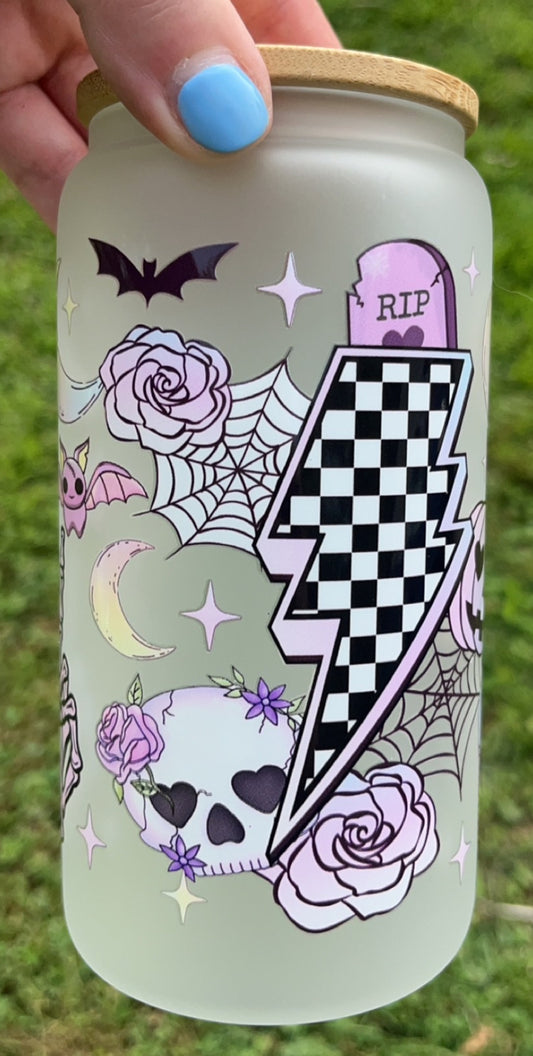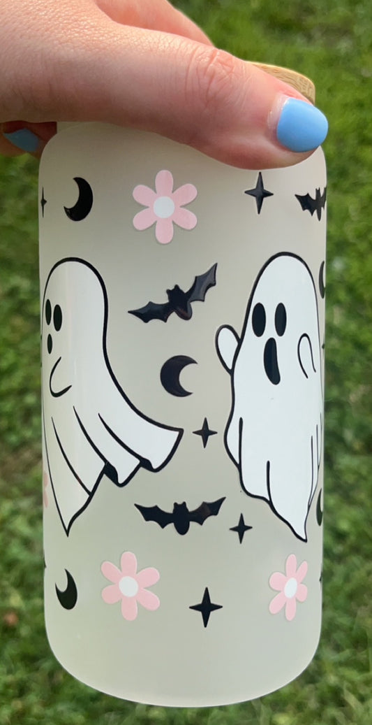 Ghost & Flowers, moons & bats - 16oz decal frosty glass cup