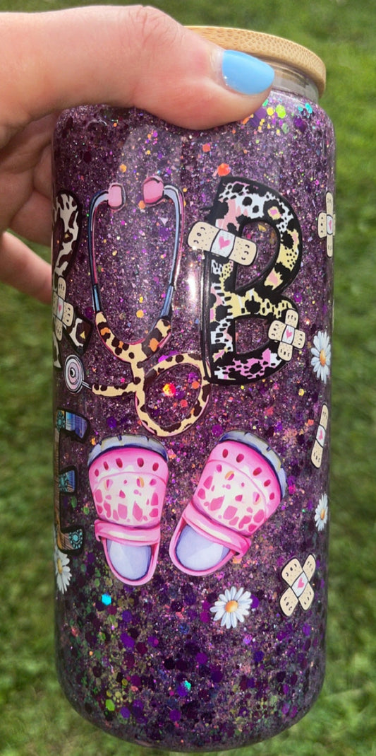 Scrub Life - 16 oz decal & glitter snowglobe cup