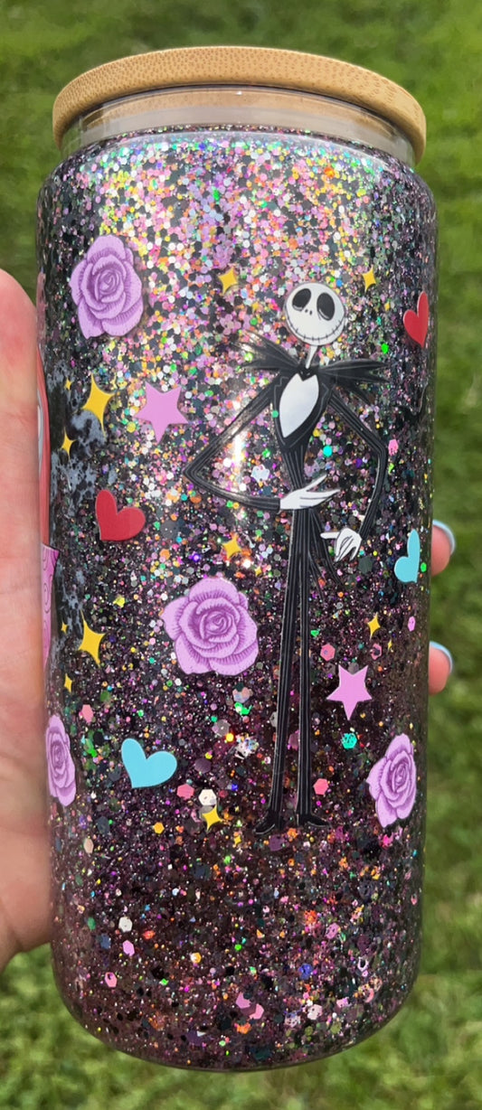 Jack & Sally - 16 oz decal & glitter snowglobe cup