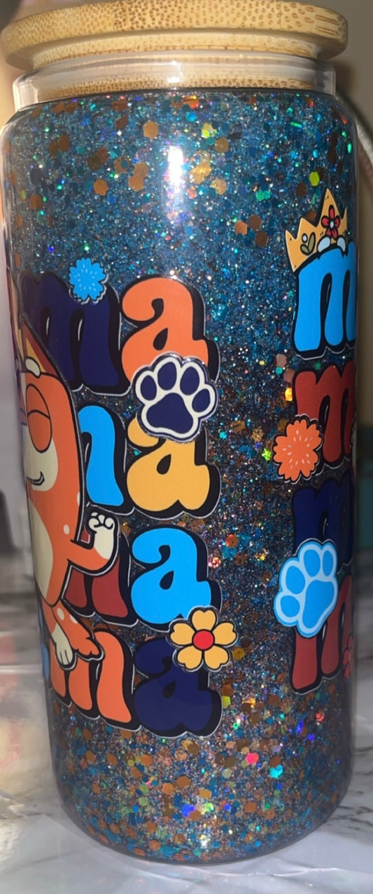 Bluey Mama - 16 oz decal & glitter snowglobe cup